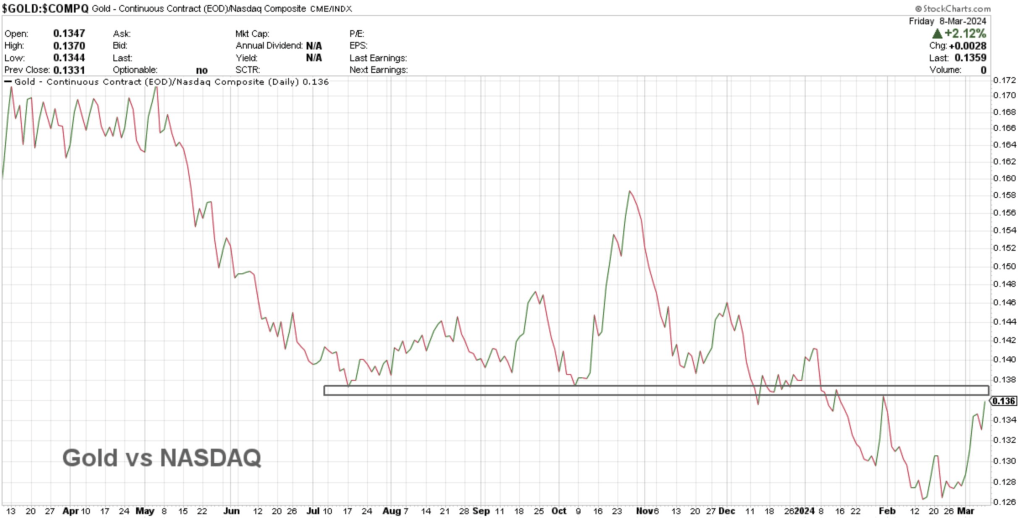 Does a breakdown in Tech here result in Gold’s outperformance?