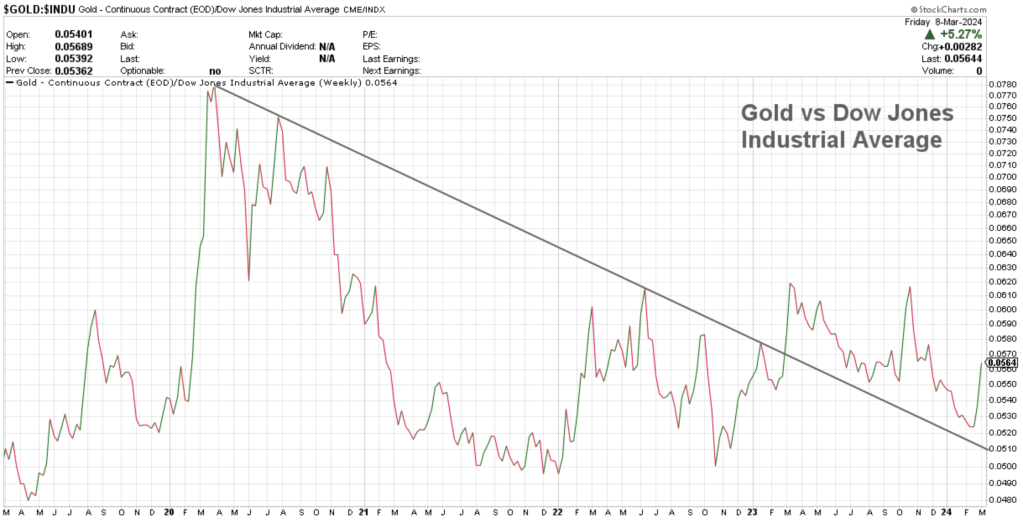 Does Gold begin to outperform arguably the most important index? Does that mean Gold could outperform stocks?