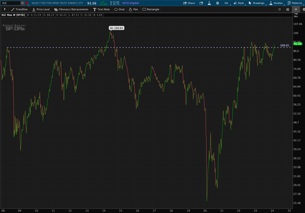 Zooming out, on the weekly chart, you can see Energy remains above ’08 highs.