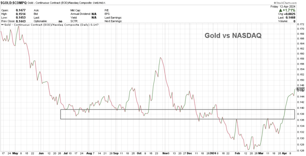 You can see at the start of April, Gold made a run for the hills compared to the Nasdaq Composite.